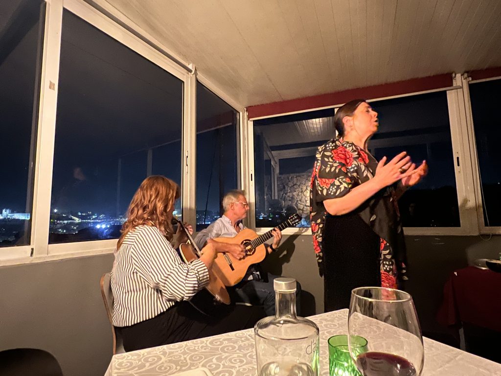 It’s a windy Thursday night in October when I walk through the streets of Porto with a clear destination: the restaurant Fado PortuguêsThere are some Fado houses in the center of Porto, but I choose this one and only Fado house at the other side of the river, in Vila Nova de Gaia. The restaurant was founded in 2021 by Sandra Correia, a renowned Fado singer. She started singing professionally at the age of 16 – since then, she has amazed audiences with her voice in many countries and of course in the Fado houses of the capital Lisbon.