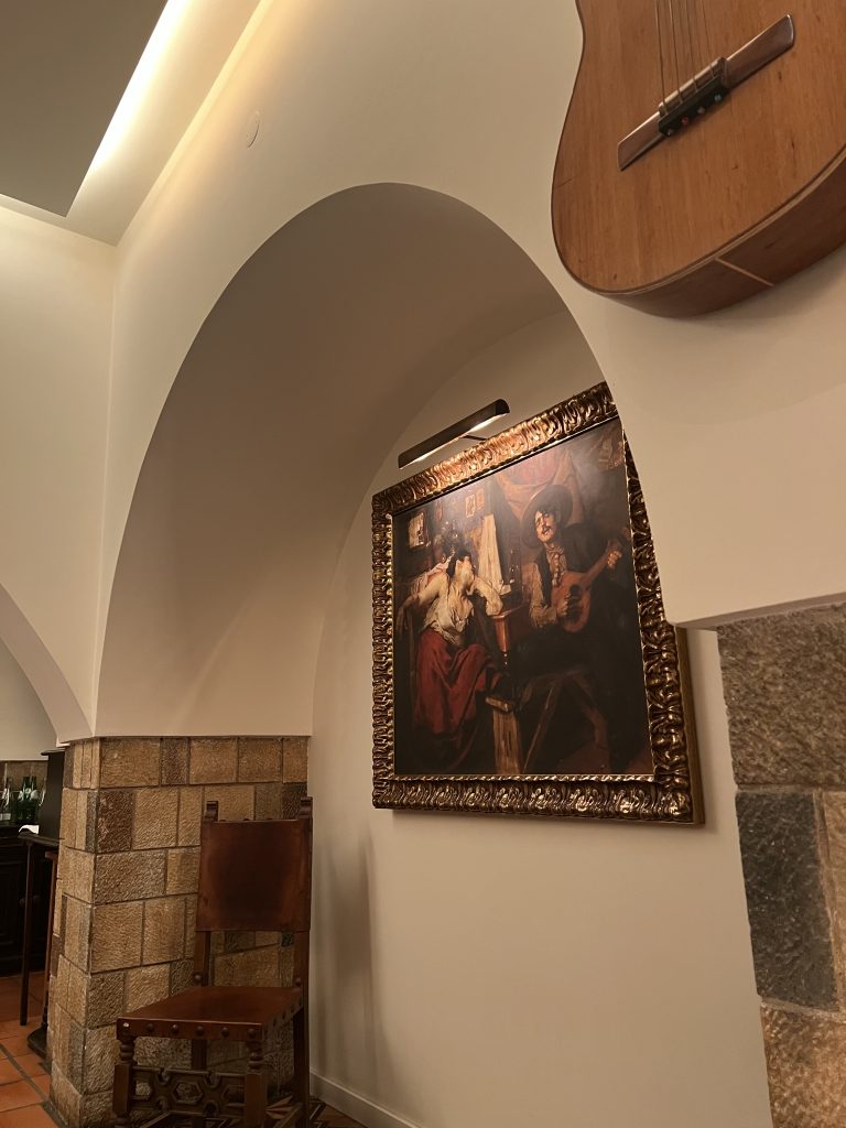 It’s true. When I go there on a Thursday night, the Ramos’ brothers welcome me. I arrive after dinner time, when the 2ndround of fado is about to start. The dinner round was fully booked, now it’s getting calmer. Entering the main room of O Faia in the Bairro Alto of Lisbon feels like walking into your parents’ living room. Seeing the brothers working together and breathing in the soulful interior of the restaurant create this comfortable feeling of home. Big bows form the ceilings, pictures of Fado legends and guitars decorate the walls. On my right there is an acoustic guitar, at the wall in front of me (some meters away) a Portuguese Fado guitar. Even three guitars are on the wall on my left. It’s like an exhibition of well-shaped guitar-bodies. The guests create a harmonious atmosphere. Most of them are young to middle-aged English-speaking couples.
